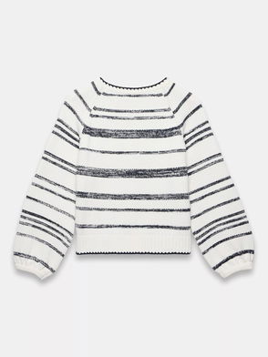 Stripe Stitch Balloon Sleeve Jumper, White Ivory