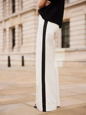 Graphic Stripe Wide Leg Trousers, Dark Green