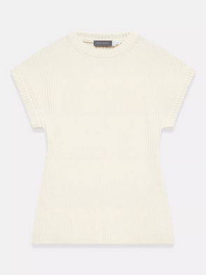 Ribbed Longline Wool Blend Knit Top, White Ivory