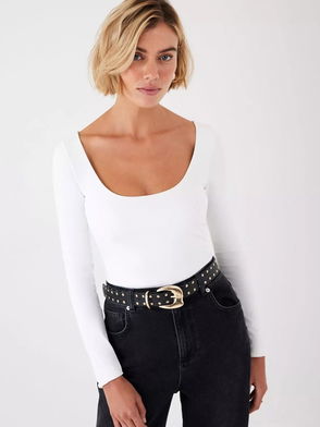 Cotton Ribbon Detail Short Sleeve Crew Neck T-Shirt