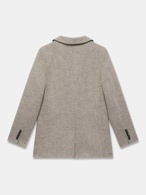 Herringbone Wool Blend Blazer, Natural