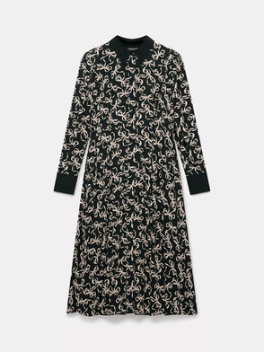 Bow Print Shirt Midi Dress, Black/Multi