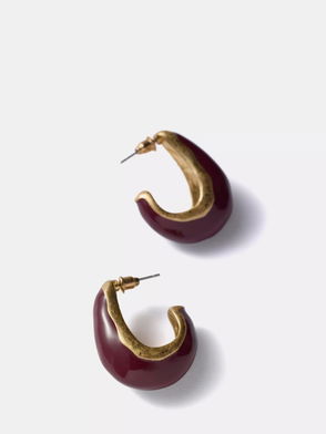 Curved Teardrop Hoop Earrings, Gold/Burgundy