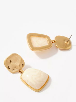 Rectangular Stone Stud Earrings, Gold/Burgundy