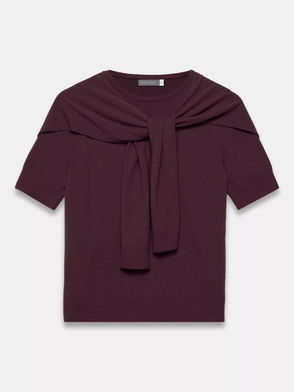Wool Blen Short Sleeve Collar Knit Top