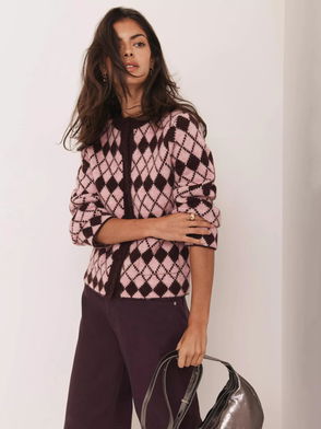 Argyle Knit Cardigan, Red Burgundy