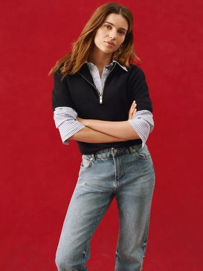 Zip Detail Knit Top, Blue Navy