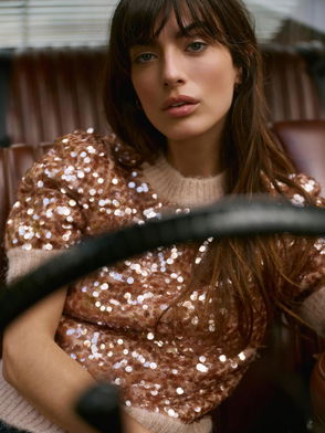 Shimmer Ruffle Detail Blouse, Black/Multi