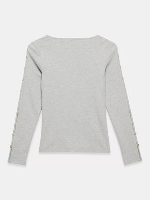 Cotton Blend Henley Long Sleeve Button Neck Top
