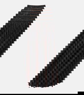 Metallic Ribbed-knit Midi Skirt