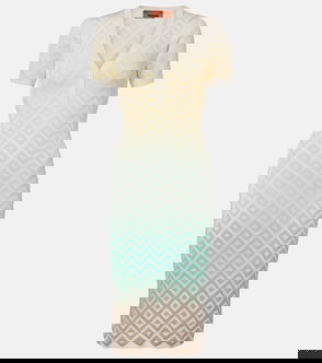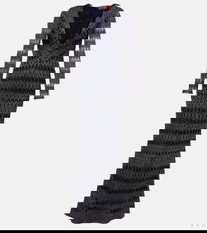 Striped Crochet-Knit Cotton-Blend Midi Dress