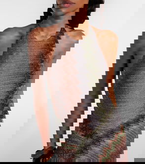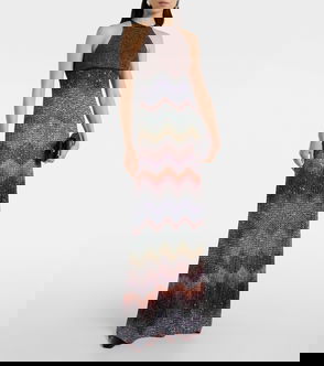 Metallic Crochet-Knit Halterneck Maxi Dress