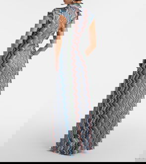Sequin-Embellished Crochet-Knit Maxi Dress