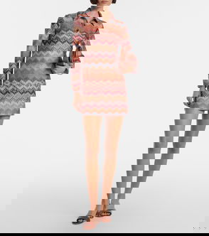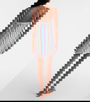 Sequin-Embellished Striped Crochet-Knit Mini Dress