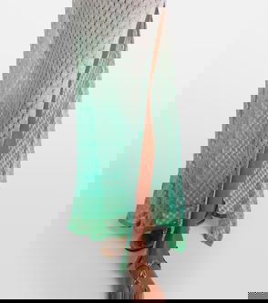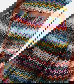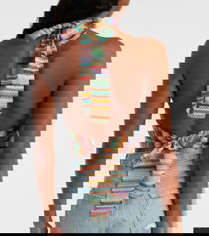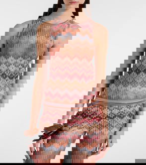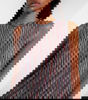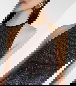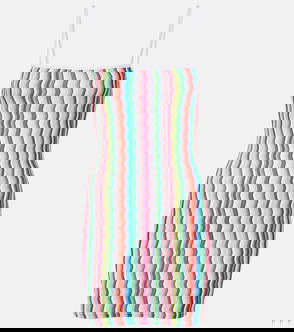 Sequin-Embellished Striped Crochet-Knit Mini Dress