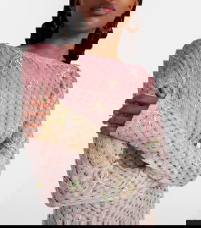 Metallic Sequined Crochet-Knit Sweater