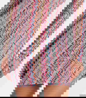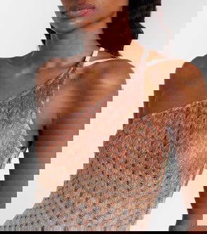 Metallic Crochet-Knit Mini Turtleneck Dress