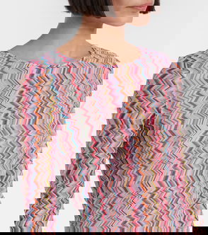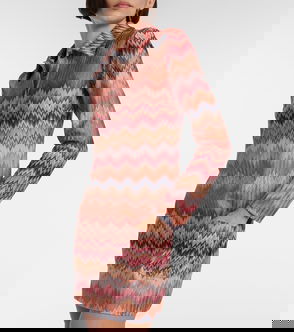 Sequin-Embellished Striped Crochet-Knit Mini Dress
