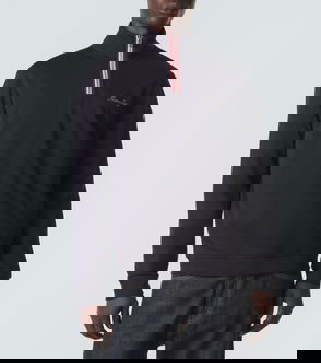 Shell-Trimmed Striped Ribbed Cotton Hoodie