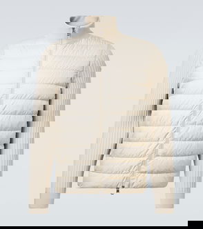 Down-Panelled Wool-Trimmed Zip-Up Cardigan