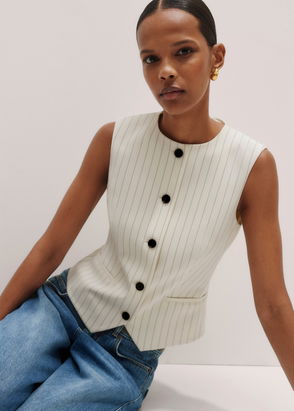 Round Neck Pinstripe Waistcoat Ivory/Black