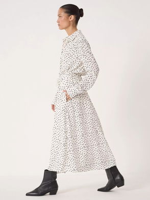 Cotton Polka-Dot Belted Midi Dress With Stretch In Black/Ivory