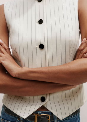 Round Neck Pinstripe Waistcoat Ivory/Black