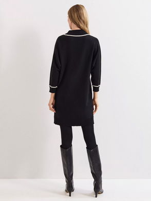 Contrast-Collar Knitted Mini Dress In Black/Ivory