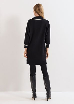Verity Drop Hem Mono Contrast Midi Dress In Black And White