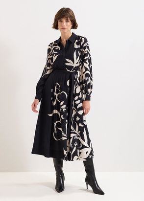 Bonnie Geometric Print Midi Shirt Dress, Black/White