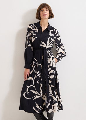 Mabli Floral Bow Midi Tea Dress, Black/White