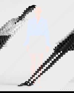 Knitted Stripe Pleated Midi Skirt In Ivory/Black