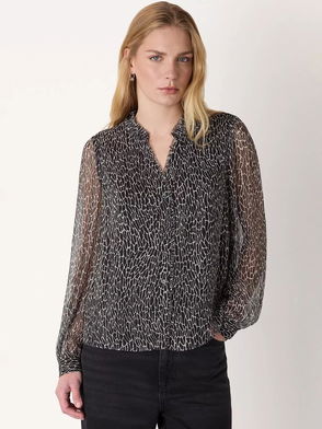 Tile-Print Balloon-Sleeve Blouse In Ivory/Black