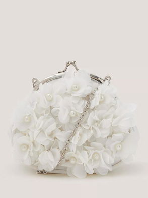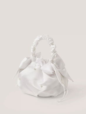 Kids' Floral Embroidered Bow Bag, Pale Pink