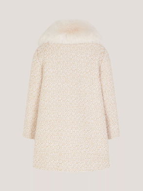 Kids' Bow Embroidered Faux Fur Coat, Burgundy