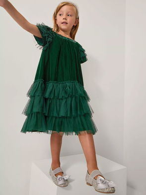 Kids' Alexandra Velvet Ruffle Party Dress, Red