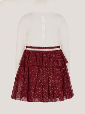 Kids' Velvet And Tulle 3D Rose Dress, Burgundy
