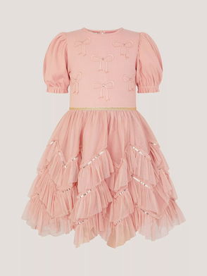 Kids' Tulle Sleeveless Ruffle Dress, Dusky Pink