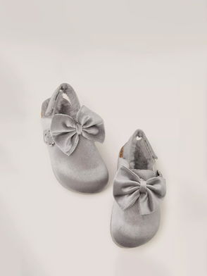 Kids' Velvet Block Heel Sequin Bow Shoes