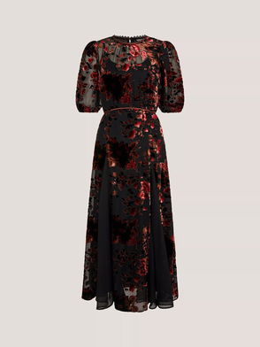Fia Fabric Mix Midi Dress Containing LENZING™ ECOVERO™ Viscose, Black
