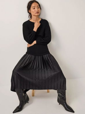 Fia Fabric Mix Midi Dress Containing LENZING™ ECOVERO™ Viscose, Black