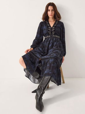 Hailsey Floral Midi Dress, Denim Blue