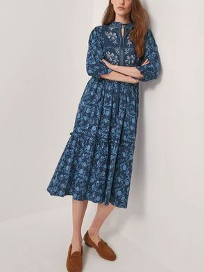Sofia Tiered Flare Cotton Blend Midi Dress