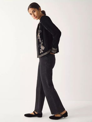 Farah Embroidered Velvet Jacket, Black