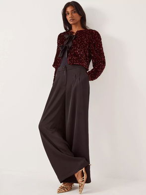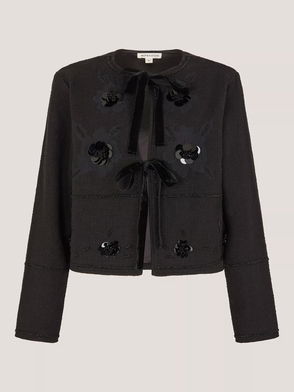 Shola Bow Detail Sequin Jacket, Black
