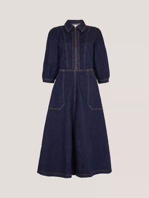 Erin Zip Front Midi Dress, Indigo