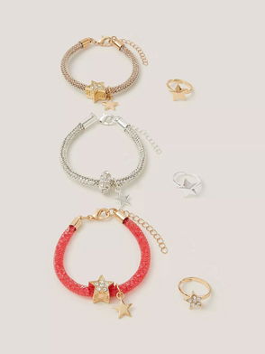 Kids' Bracelet And Ring Jewellery Set, Pack Of 6, Gold