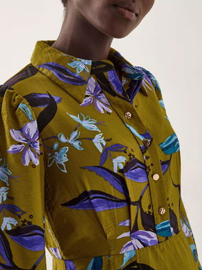 Kristen Floral Print A-Line Cotton Midi Smock Dress