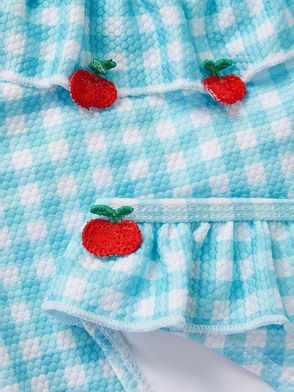 Kids' Gingham Cherry Top And Skirt Set, Green