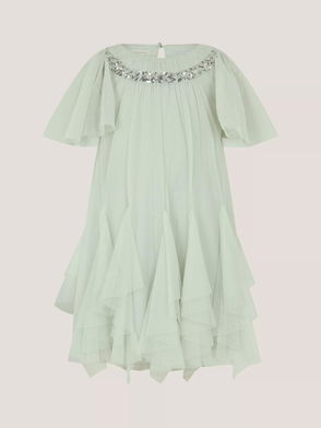 Baby Peony Embroidered Tulle Party Dress, Sage